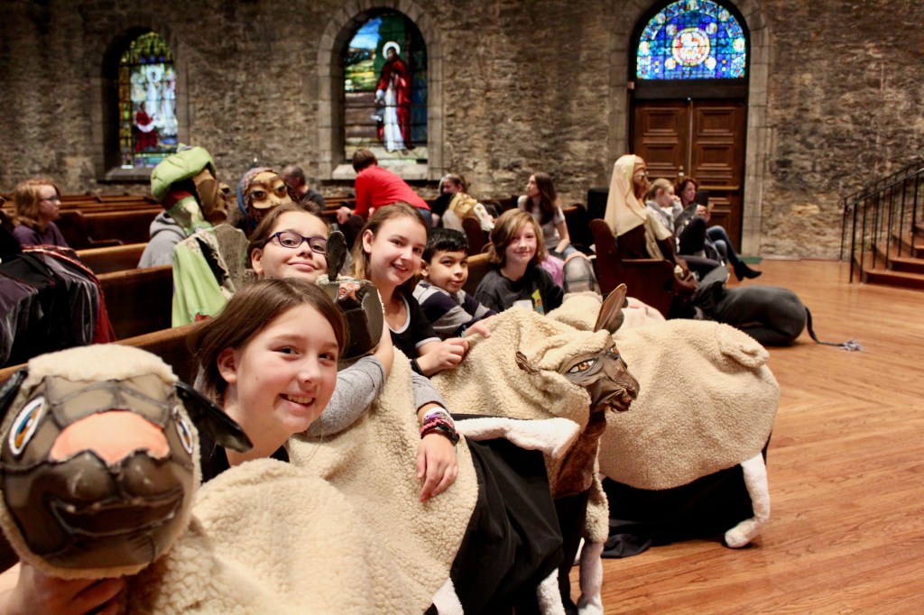 Know a child who would make a good sheep? Children over the age of 7 and under 5′ are always welcome to join the Nativity family!
